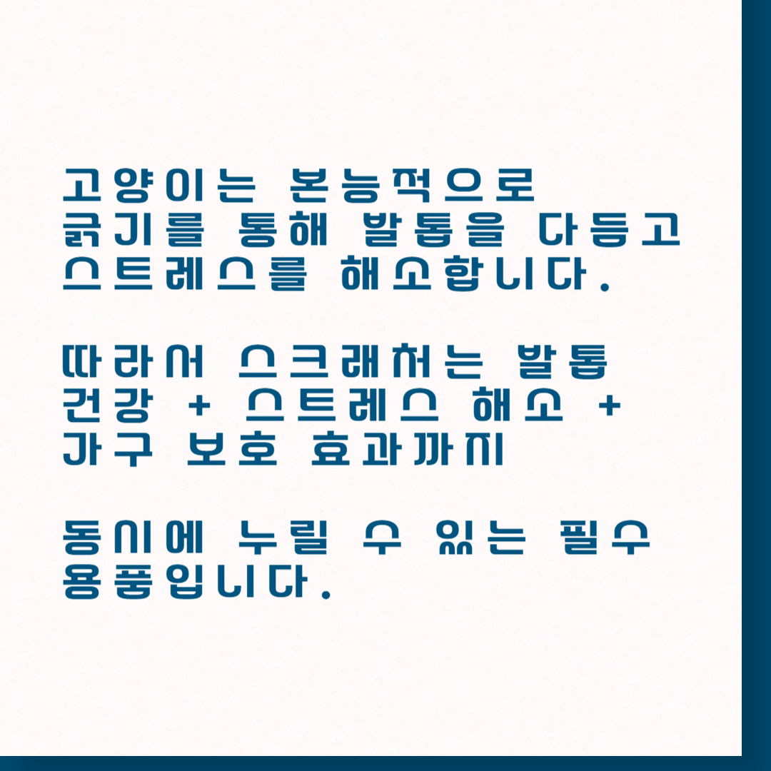 - 추천 제품: 내구성 높은 삼줄 스크래처, 고양이 키 높이에 맞춘 기둥형